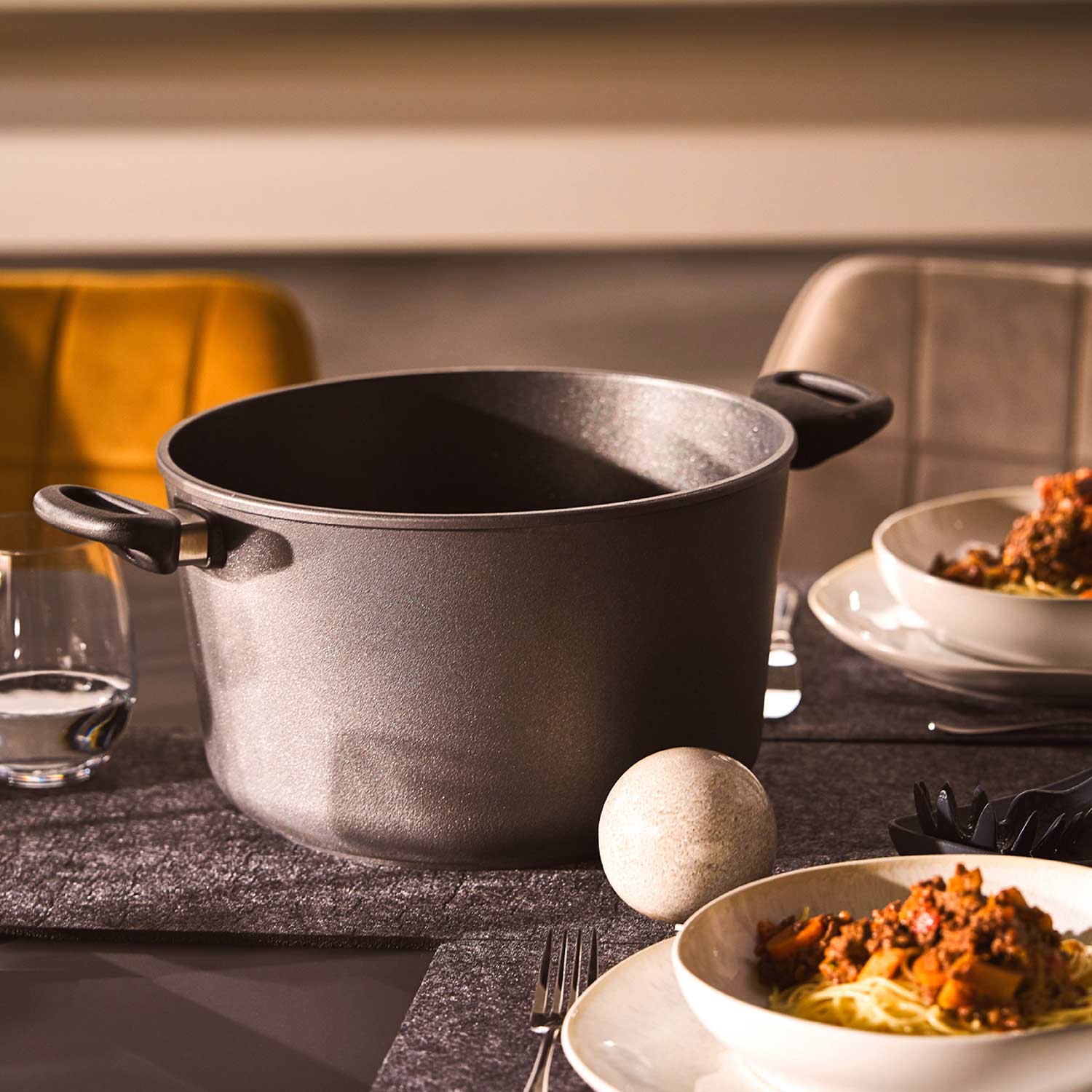 Kochtopf Aluguss - Welches Material sinnvoll ist, haben wir Ihnen vorweg bereits erklärt. Eine hochwertige Antihaftbeschichtung ist besonders relevant, damit stärke- und milchhaltige Zutaten nicht ankleben. Suchen Sie sich unbedingt den Kochtopf aus, der zu Ihren Anforderungen passt. Wählen Sie die Größe so, dass sie zu Ihrem Gargut passt, welches Sie zubereiten möchten. Für den Braten eignet sich beispielsweise ein Bräter perfekt, für Spaghetti hingegen wählen Sie einen möglichst hohen Kochtopf. Die Kasserolle ist der perfekte Begleiter, der ebenfalls in keiner gut sortierten Küche fehlen darf. In ihr bereiten Sie einfach Saucen aller Art zu.
