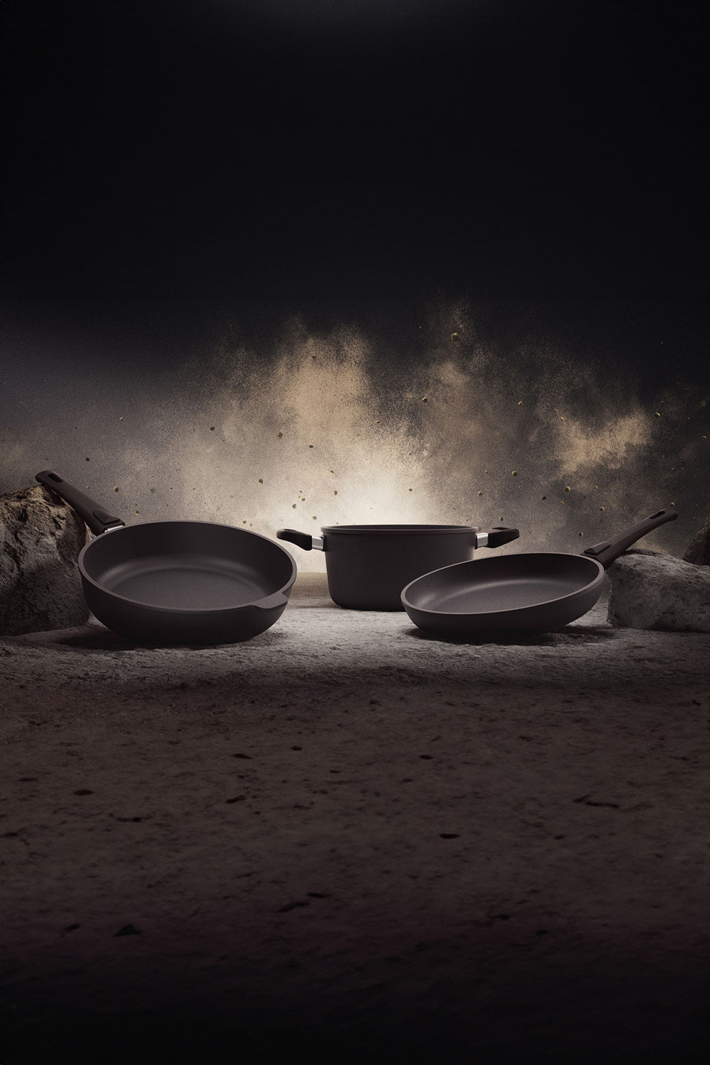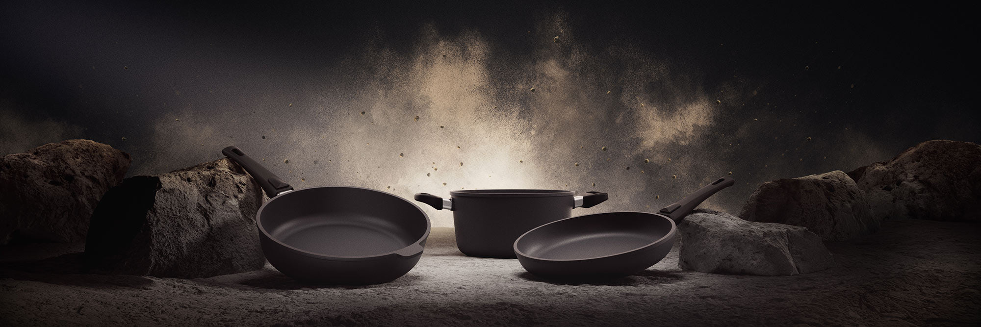 Sie basiert auf natürlichen Quarzkristallen, ist frei von PFAS wie PTFE/TEFLON und vereint herausragende Brateigenschaften mit spürbarem Komfort. Selbst säurehaltige Zutaten meistert sie mühelos.
