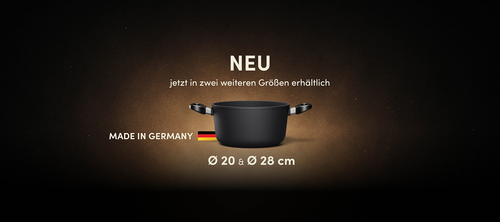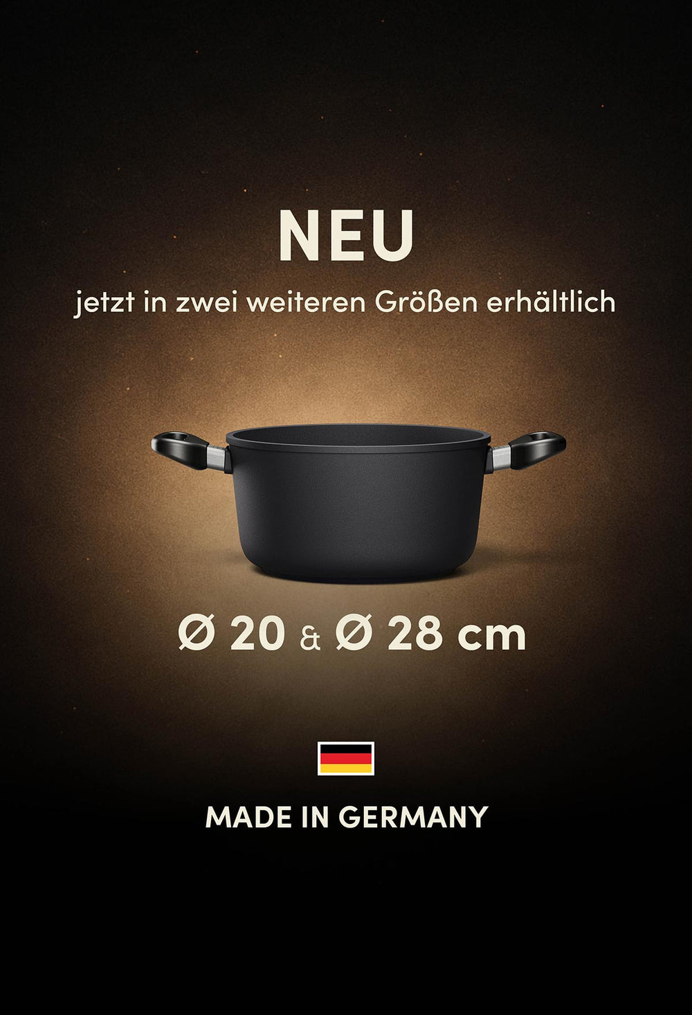 Die Nachfrage nach unserer neuen STONIQ Serie hat alle Erwartungen übertroffen. Viele von Ihnen haben sich weitere Topfgrößen gewünscht – und wir haben zugehört. Darum erweitern wir die Serie ab sofort um zwei zusätzliche Kochtopfgrößen: 20 cm & 28 cm.