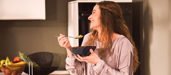 ✔ Bei stärkeren Rückständen genügt es, die leere Pfanne kurz mit Wasser einzuweichen.