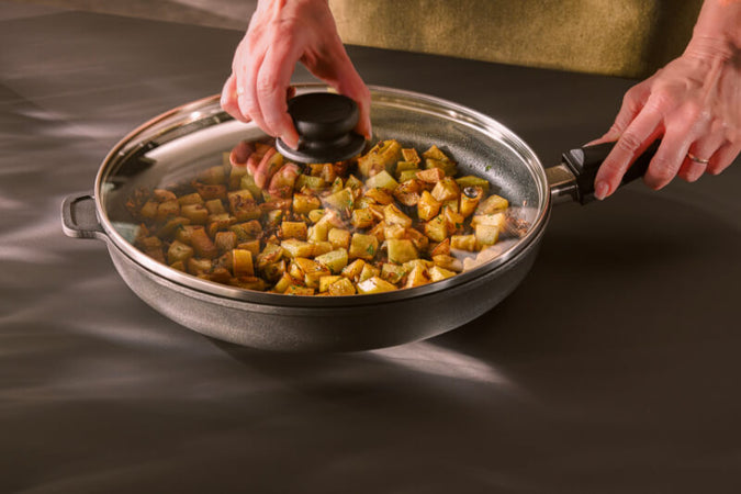 Unsere hochwertige Bratpfanne begleitet Sie jeden Tag zuverlässig zum Genuss.