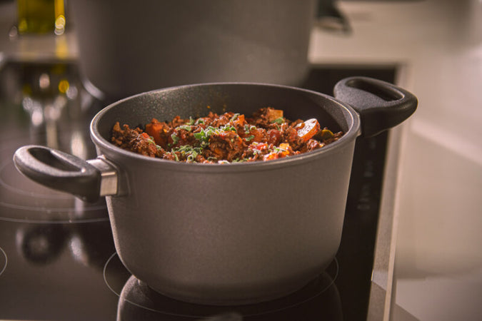 Unser Aluguss-Kochgeschirr lässt sich dank der hochwertigen Antihaftbeschichtung im Handumdrehen reinigen – ganz ohne aggressive Reinigungsmittel oder mühsames Schrubben.