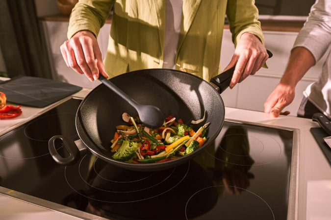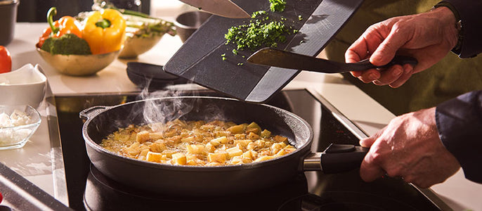 Bei der Zubereitung Ihrer Lieblingsgerichte ermöglicht Ihnen der flache Rand unserer Pfannen das einfache Wenden von Zutaten.