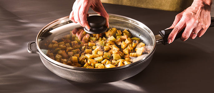 Sie können in unserer Hoffmann-Bratpfanne unkompliziert braten, schmoren und backen, ohne dass Speisen ankleben - dafür mit hervorragenden Röstaromen.