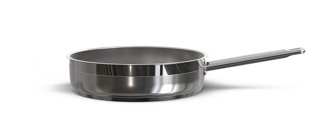 Entdecken Sie die Hochrandpfanne in 24 oder 28 cm – inklusive Deckel. Aus hochwertigem Edelstahl mit satiniert-polierter Oberfläche überzeugt sie nicht nur optisch, sondern auch funktional.