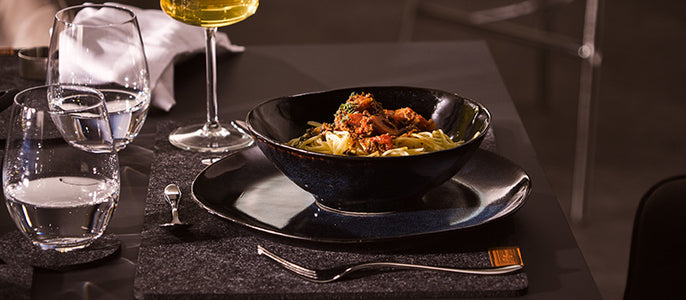 Wegen ihrer dezenten, eleganten Farbgebung und ihres zeitlosen Materials sind unsere Platzsets mit nahezu allen Geschirrarten und -farben kombinierbar. Lediglich Teller in der gleichen Farbe könnten auf ihnen etwas zu düster wirken. Sie können die Platzsets sowohl mit klassischem weißem Porzellangeschirr als auch mit bunten Steinguttellern eindecken. Ebenso eignen sich die Tischsets als Unterlage für gemustertes Geschirr - ob in einem modernen grafischen Design oder im Blümchendekor aus Großmutters Schrank. Ein ganz besonderes Duo ergeben unsere Platzsets zusammen mit hellen, eckigen Tellern.