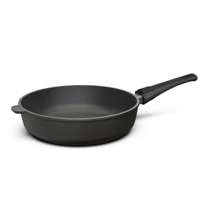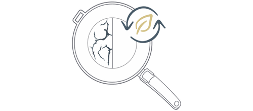 Recyceltes Aluminium als Ausgangsmaterial stellt sicher, dass sich Hitze schnell und gleichmäßig bis in den Rand verteilt. Zugeführte Wärme wird langfristig in unserem massiven Guss gespeichert und sichert Ihnen beste Röstaromen, selbst wenn kalte Zutaten angebraten werden.
