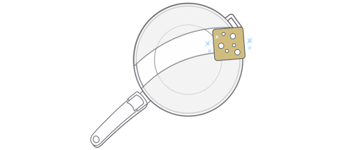 ✔ Bei stärkeren Rückständen genügt es, die leere Pfanne kurz mit Wasser einzuweichen.